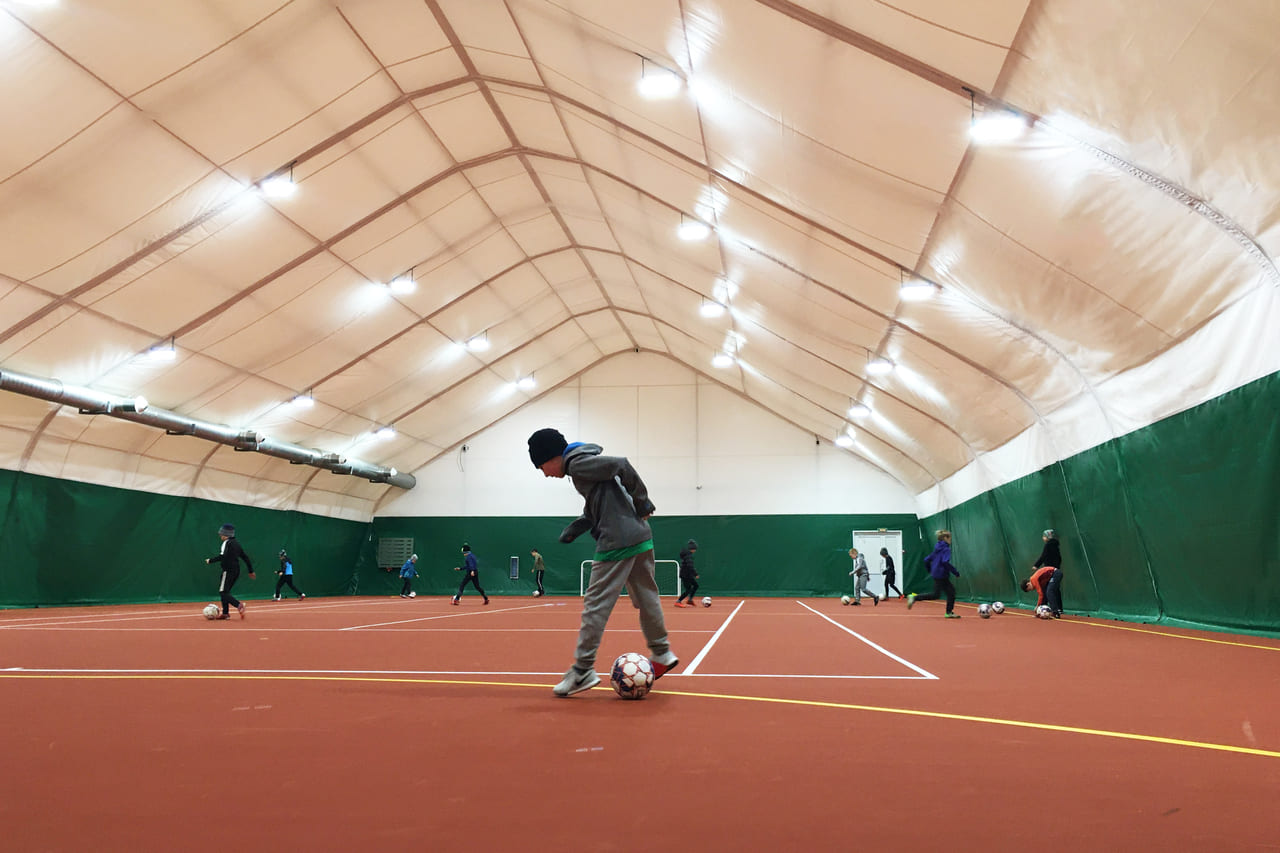 Современный каркасно–тентовый футбольный манеж – это просторное крытое поле для регулярных тренировок, любительских игр и соревнований. Отсутствие внутренних колонн даёт максимум игрового пространства и хороший обзор, поэтому манеж удобен и для игроков, и для зрителей.