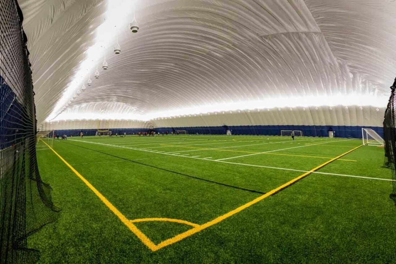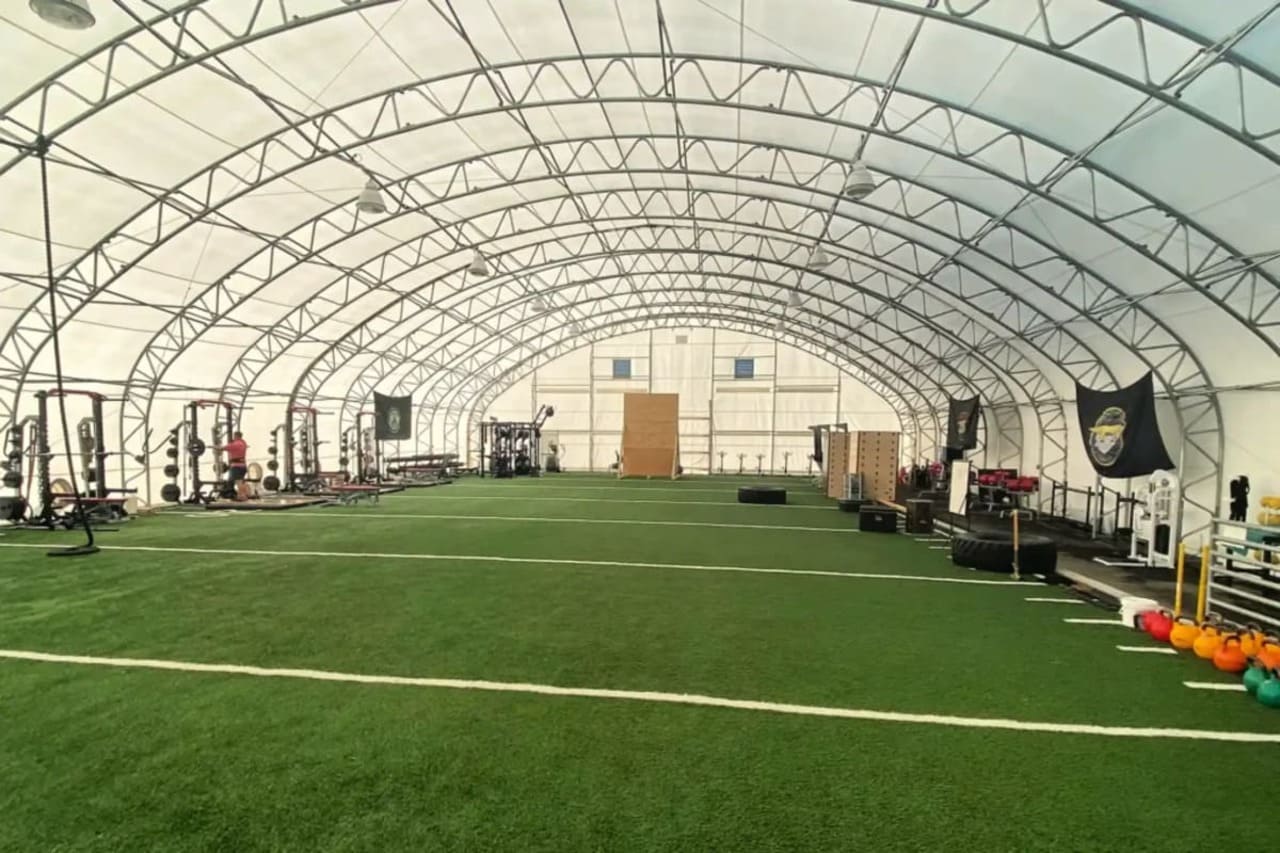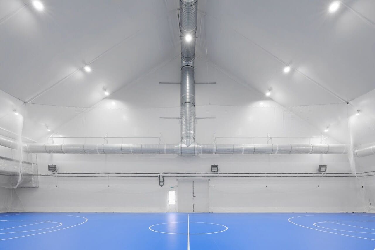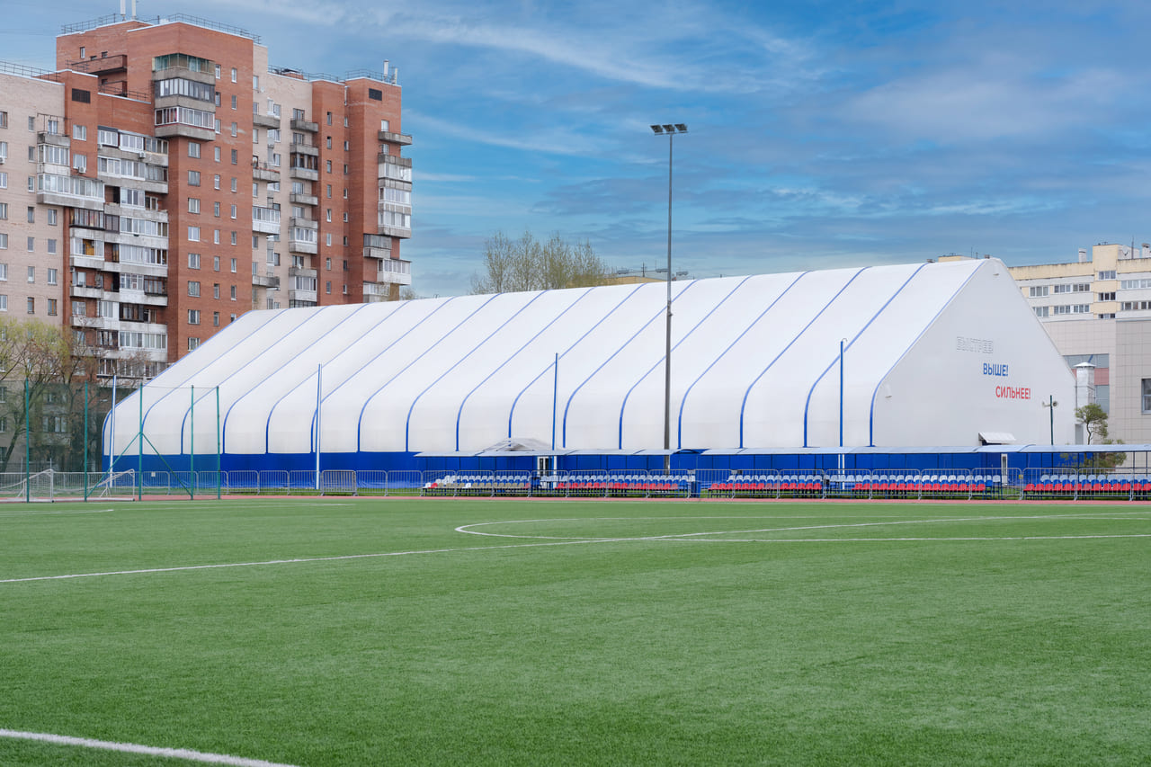 2. Большие пролёты – до 60–80 метров без внутренних опор, удобно для полноценного поля и тренажёрных зон.