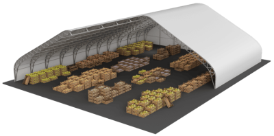 Хранение овощей и собранного урожая – не менее важная задача, чем его выращивание. Тентовые ангары позволяют организовать удобное и вместительное пространство для размещения сельскохозяйственной продукции, временного складирования и дозревания урожая. Такие конструкции подходят для хранения картофеля, овощей, фруктов, зерна и другой продукции, требующей защиты от осадков, прямых солнечных лучей и резких перепадов температуры.